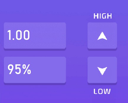 Для начала игры укажите сумму и процент выигрыша. Далее попробуйте угадать, нажав на одну из кнопок